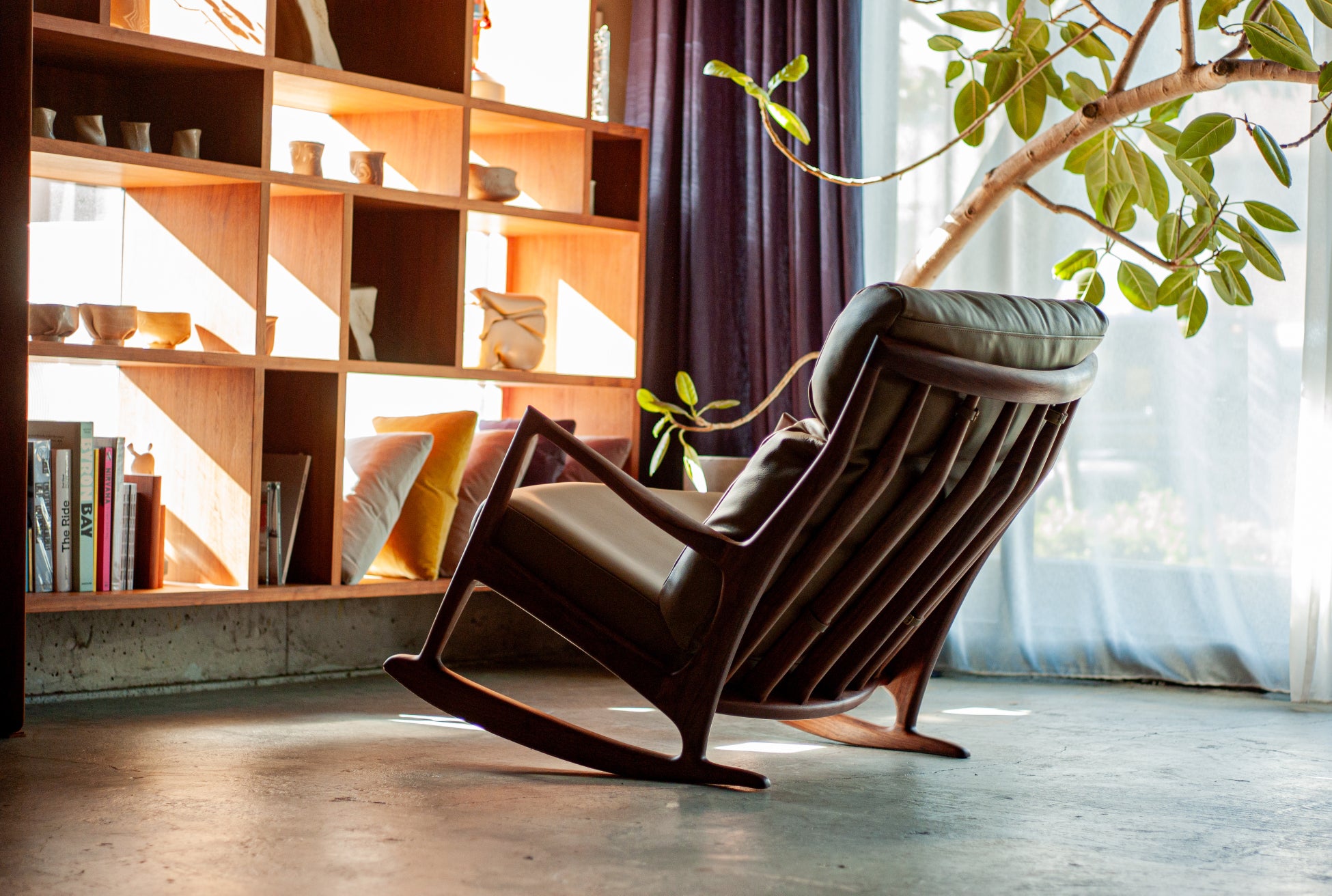 KOMA初のロッキングソファをリリース。全身を預けられる“揺れ”の心地よさと職人技の造形美を追求し、長く使える一生ものの一脚が完成しました。