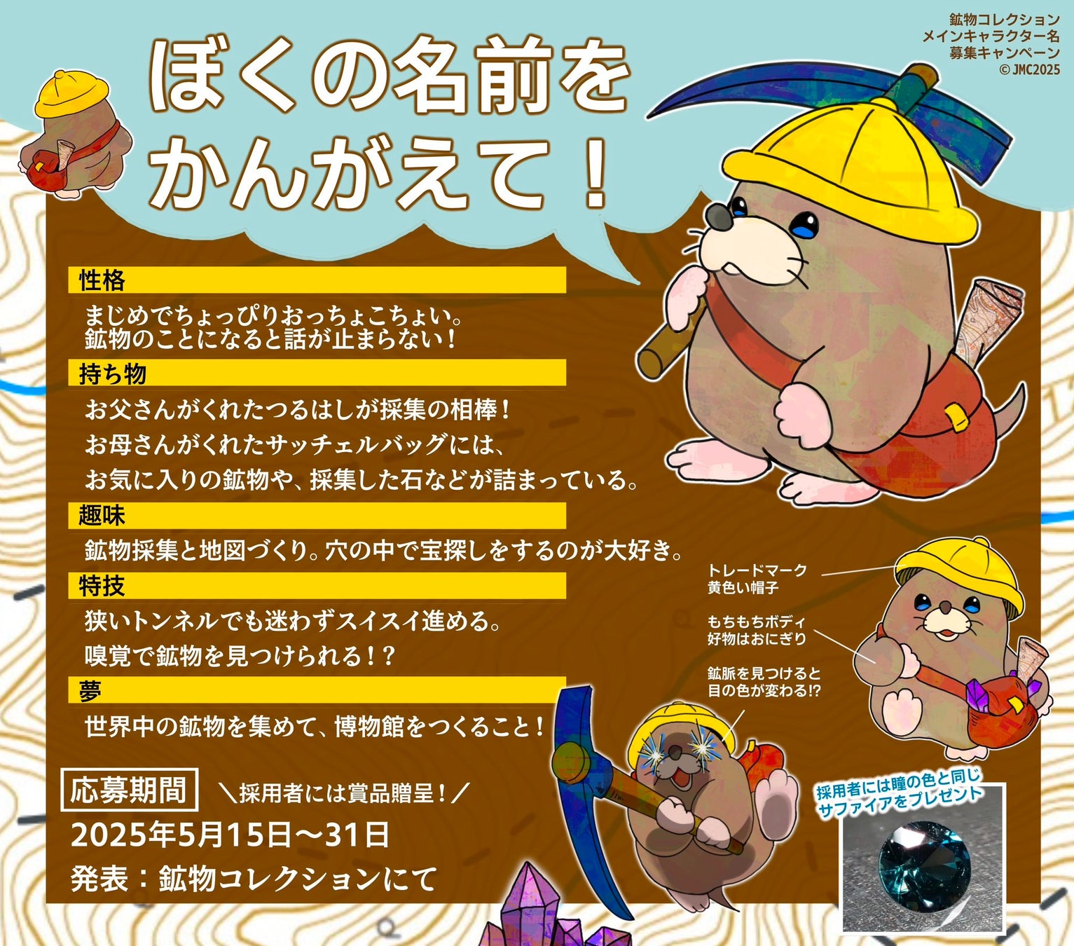 鉱物コレクションを盛り上げる、モグラの男の子。XとInstagramにてキャンペーン実施中です!