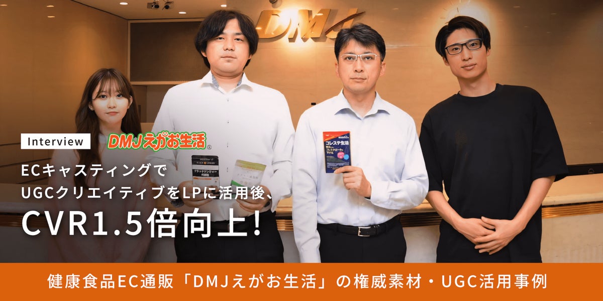 株式会社コマースフォース(本社:東京都中野区、代表取締役社長:小野瀬冬海、以下:コマースフォース)は、健康食品EC通販「DMJえがお生活」を展開する株式会社ディーエムジェイ(東京都千代田区、代表取締役社長:西方 裕暢、以下:DMJえがお生活)に対し、UGC生成・素材制作・キャスティングなどのLPO支援サービス「ECキャスティング(EC CASTING)」の提供を開始し、CVR1.5倍向上を実現いたしましたので、お知らせいたします。