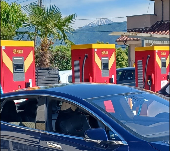 【日本初の3台設置EV充電ステーションが山梨県に完成】最大180kWのEV超急速充電器「FLASH」を同一箇所に3台設置