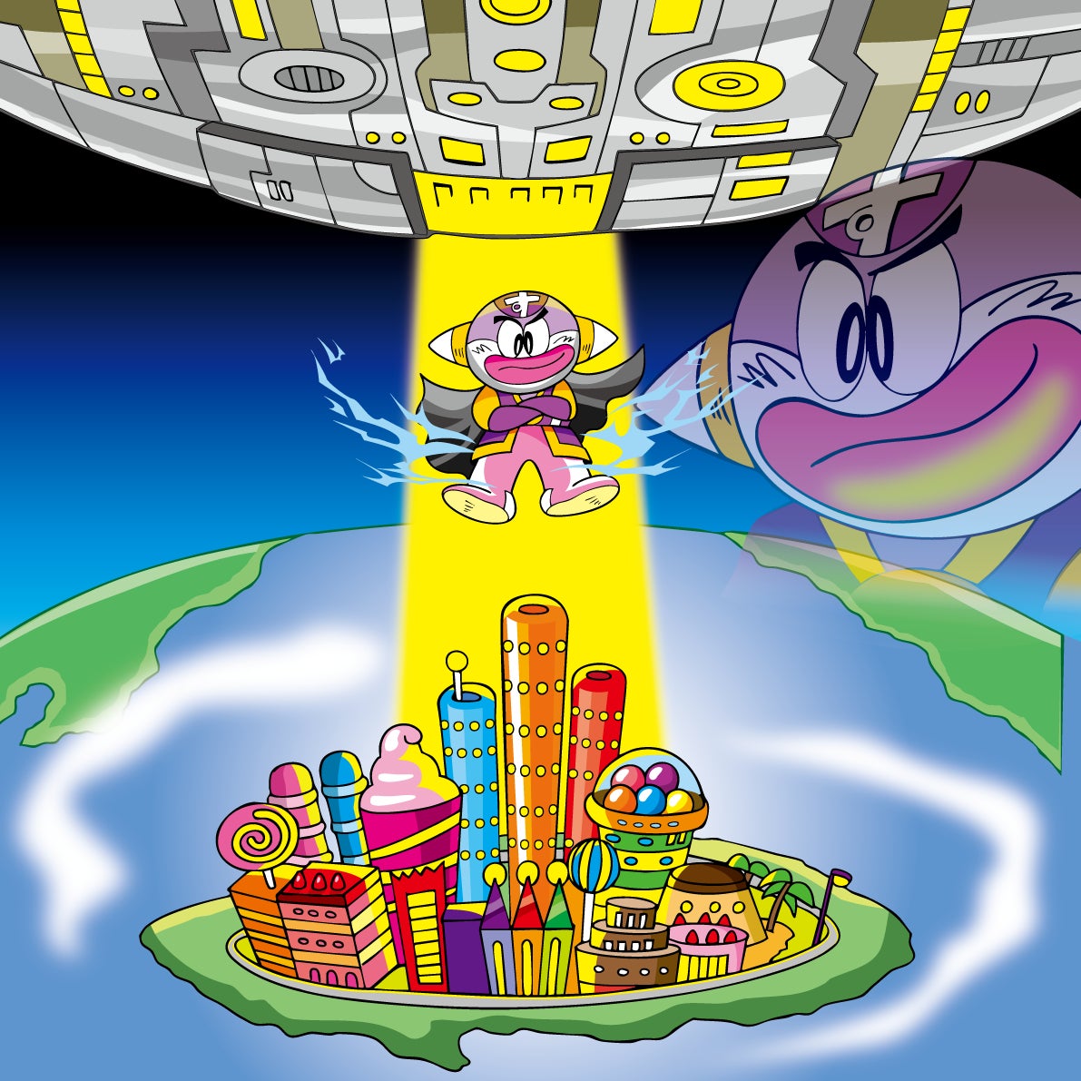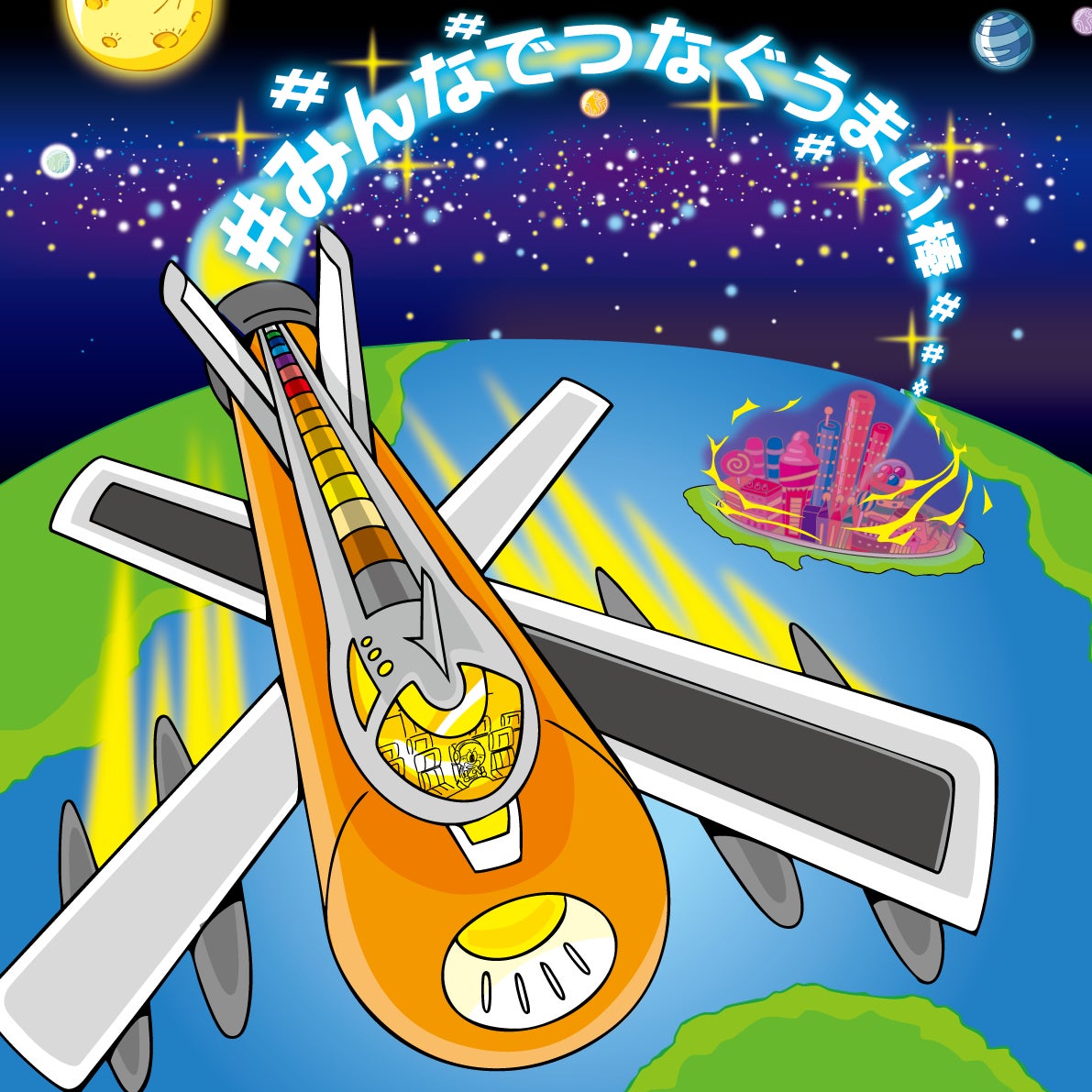 11月11日、空に巨大な宇宙船が出現!うまえもんの住む街「テイシティ」にお菓子大好き宇宙人スナックスがやってきた!お菓子大好き星人「スナックス」によってお菓子とうまみちゃんが吸い込まれてしまう。うまえもんはスナックをこらしめるために宇宙の15の惑星の仲間に応援を頼みに向かう事に。ハッシュタグ、#みんなでつなぐうまい棒の力を推進力に進む宇宙船に乗り込み、広大な宇宙を旅する物語が始まる。