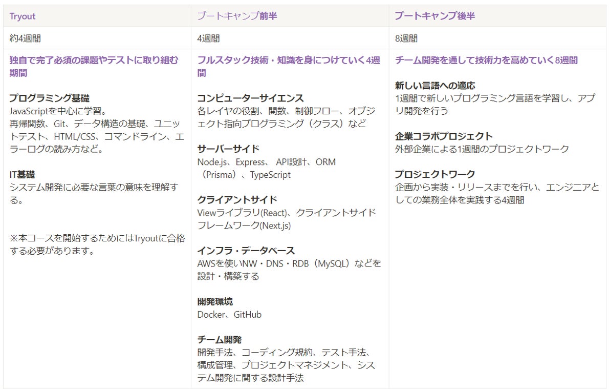 カリキュラムではコンピュータサイエンス、クラウドネイティブな開発経験など即戦力となる高い技術力とあわせ、長期的にビジネスの世界で活躍するためのヒューマンスキルの育成に重きをおくことも特徴です。また、「令和版女子教育」をコンセプトとし、女性のみの学習環境を用意することで、女性のライフスタイルに寄り添った学びやすさやサポート体制を提供しています。