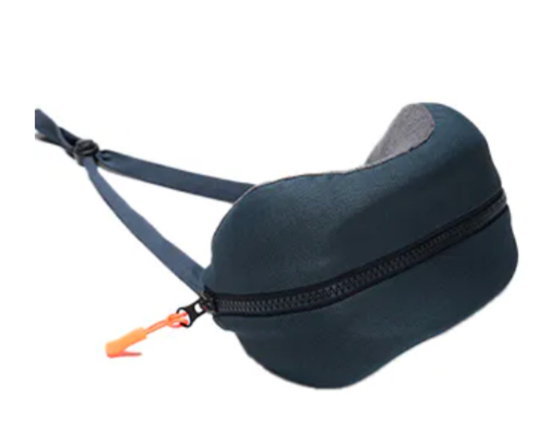 従来のネックピローとは異なり、使用中に首がブレにくい構造を採用。首と背骨の自然なアライメントを保つことで、血流や呼吸を妨げず、移動中のむくみや疲労、頭痛を和らげます。