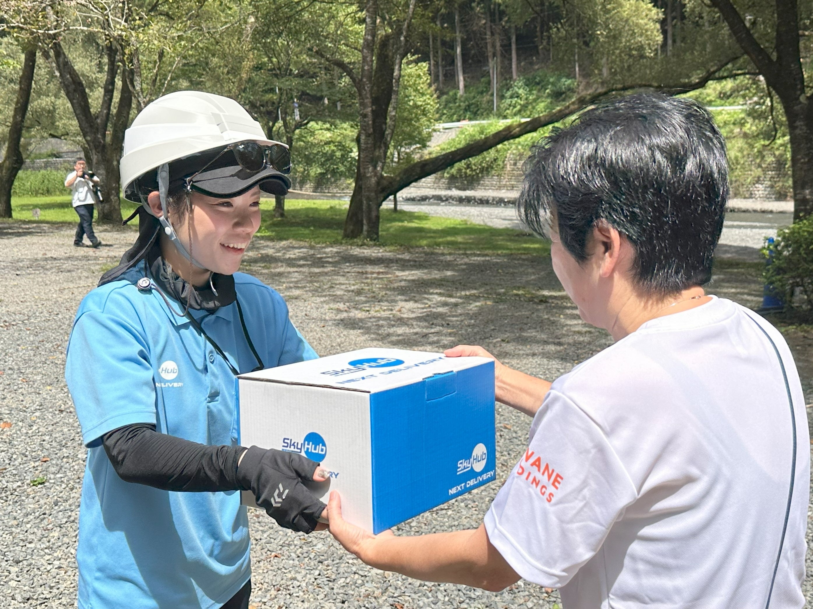 9月2日のドローン配送で川根茶セットを受け取ったキャンプ場管理人 浜谷様は、「災害時はもちろん平常時にも買い物支援など幅広く利用できればと期待したい」とコメントしています。