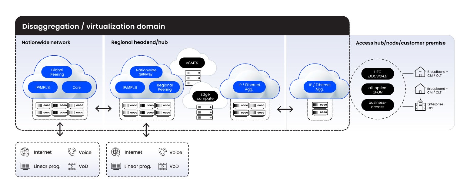 ドライブネッツ社のクラウドベースの機能により、コムキャストはネットワークを構成するハードウェアとソフトウェアを独自に管理できるようになります。これは「ディスアグリゲーション」とも呼ばれています。これらの機能を分離することで、ネットワークのコアからエッジまでのあらゆるレイヤーを仮想化し、クラウド上でそれらのタスクを実行することが可能になります。このソフトウェア定義のアプローチは、ネットワークパフォーマンスを最大限に引き出し、AI による自己修復機能を統合しやすくし、顧客体験をよりダイナミックに改善し、効率性を向上させることが期待されています。