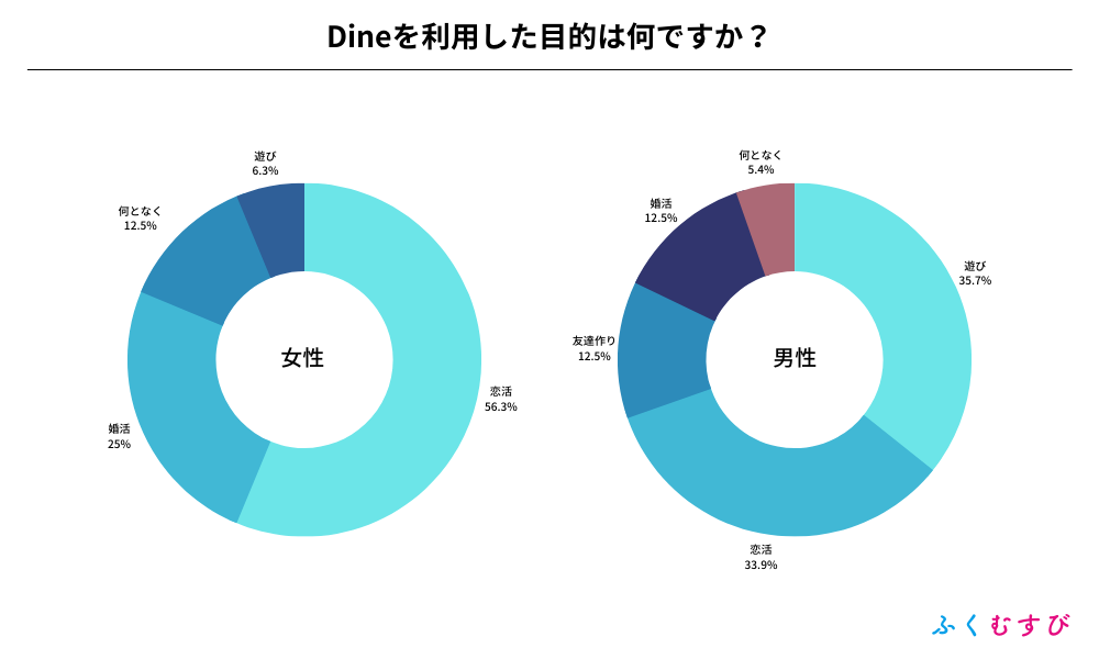 ・女性がDineを利用した目的は、恋活が1位、婚活が2位となりました。