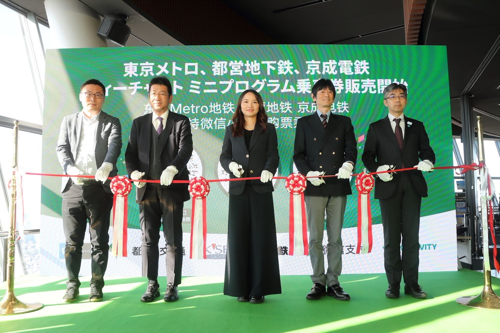 (写真左から)リンクティビティ株式会社代表 孔 成龍(こう せいりゅう)氏、京成電鉄株式会社鉄道本部 計画管理部長 松本 直範(まつもと なおのり)氏、微信支付北東アジア ゼネラルマネージャー(取締役)CeCe Wang氏、東京地下鉄株式会社鉄道本部 CX・マーケティング部長 川上 幸一 (かわかみ こういち)氏、東京都交通局 電車部長 神永 貴志 (かみなが たかし)氏
