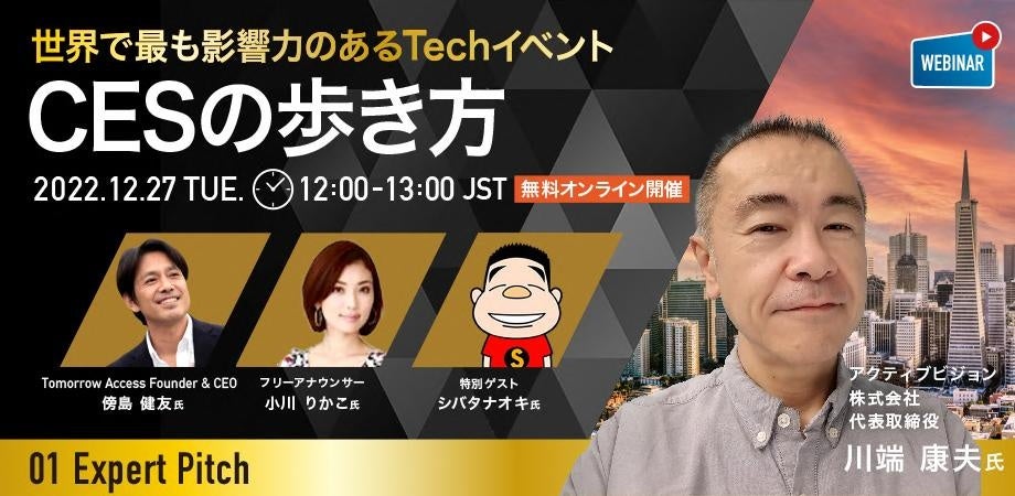 さらに、2022年12月27日開催の弊社無料ウェビナー開催する「01 Expert Pitch CESの歩き方」にご登録いただいた方には、さらにお得となる割引クーポンをプレゼントいたします。奮ってご参加ください。