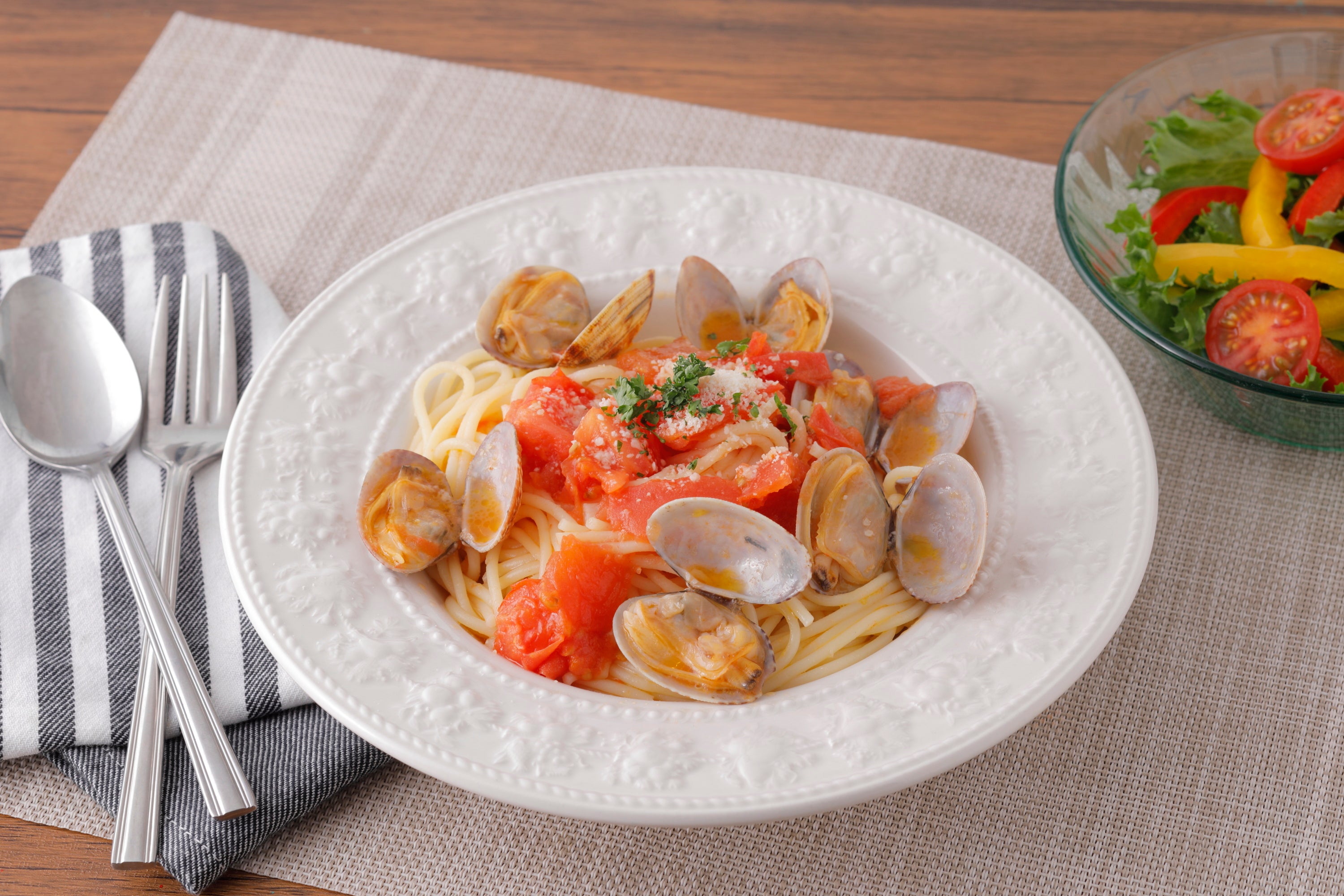 あさりとトマトの液体塩こうじパスタ 90秒
