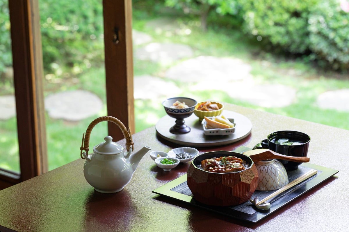 メインのひつまぶしだけではなく、副菜も汁物もすべて揃うので旅館のような豪華な食卓に。2人前の食事がこれひとつで完成します。