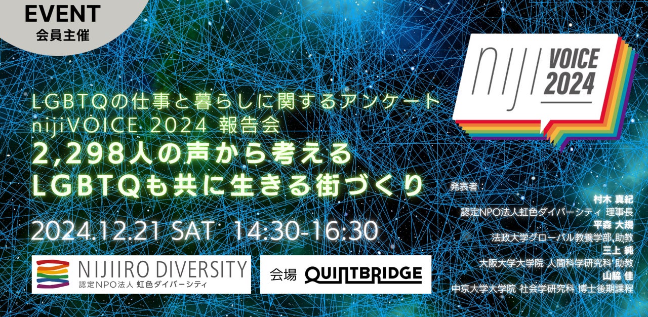 「LGBTQの仕事と暮らしに関するアンケート nijiVOICE2024 報告会」を開催 〜2,298人の声から考えるLGBTQも共に生きる街づくり〜