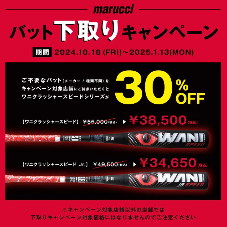 30%OFFで『赤WANI』をGETできる、バット下取りキャンペーン対象店舗はこちら!