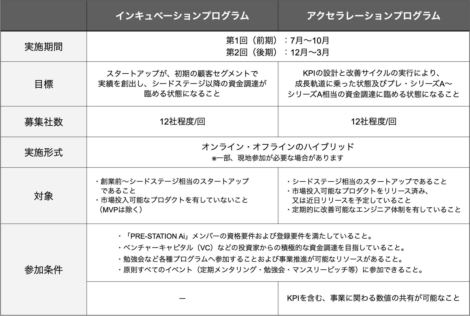 「PRE-STATION Ai」で展開する短期集中型プログラム(後期)「インキュベーションプログラム」と「アクセラレーションプログラム」に参加するスタートアップを募集開始