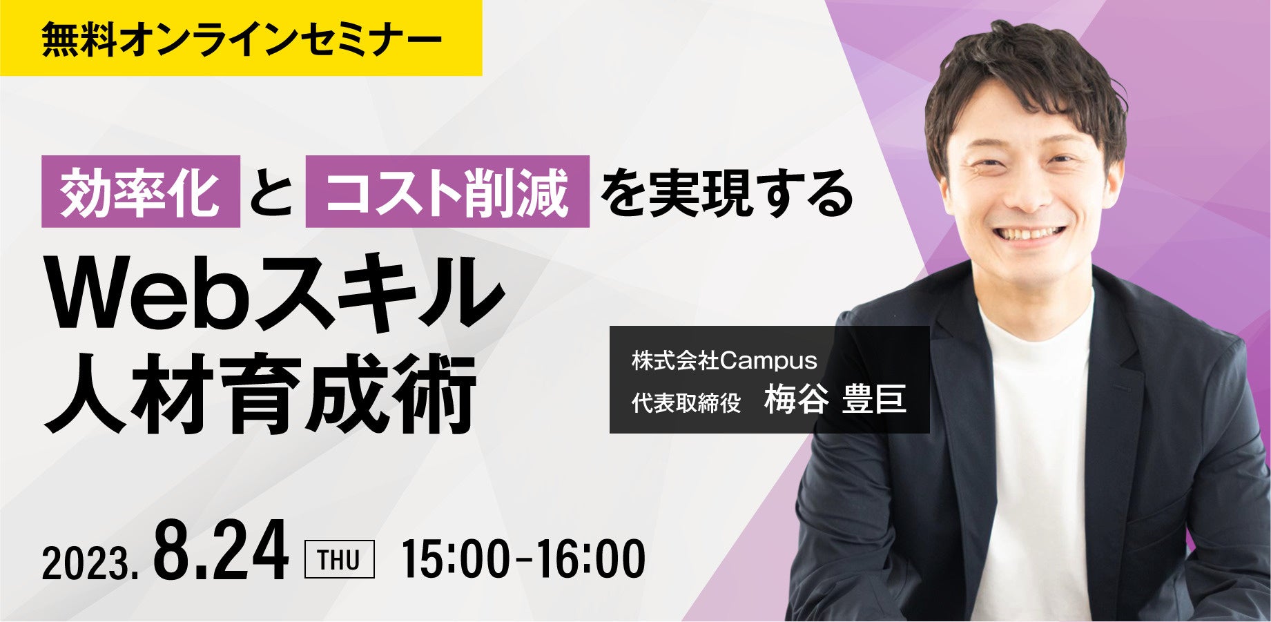 600名のデザイナーや動画編集者などのクリエイターを育成した、株式会社Campus 代表取締役 梅谷 豊巨氏登壇決定!「効率化とコスト削減を実現する Webスキル人材育成術」セミナー開催決定!