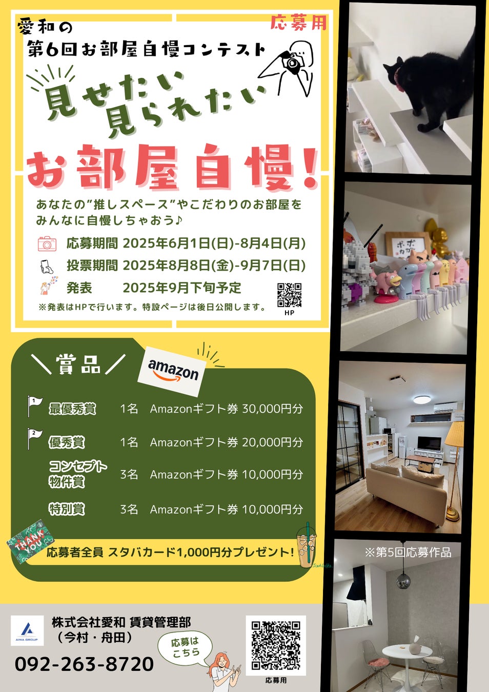 株式会社愛和(本社:福岡市中央区、代表取締役:阿部大輔)は、2025年6月1日より、同社が管理する物件の入居者を対象とした「第6回お部屋自慢コンテスト」を開催いたします。