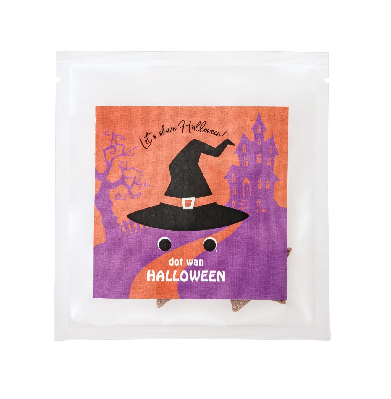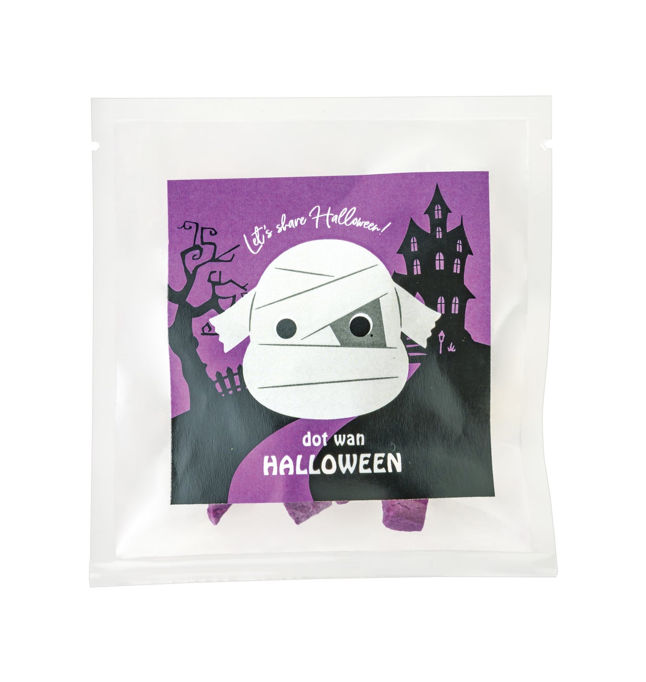 この商品は、ハロウィンの季節限定おやつ3種類と、ドットわんの人気レギュラー商品2種類を詰め合わせたアソートバッグです。「おいしい」をちょっとずつ色々楽しめる食べきりサイズの個包装で、おすそ分けにもぴったりです。