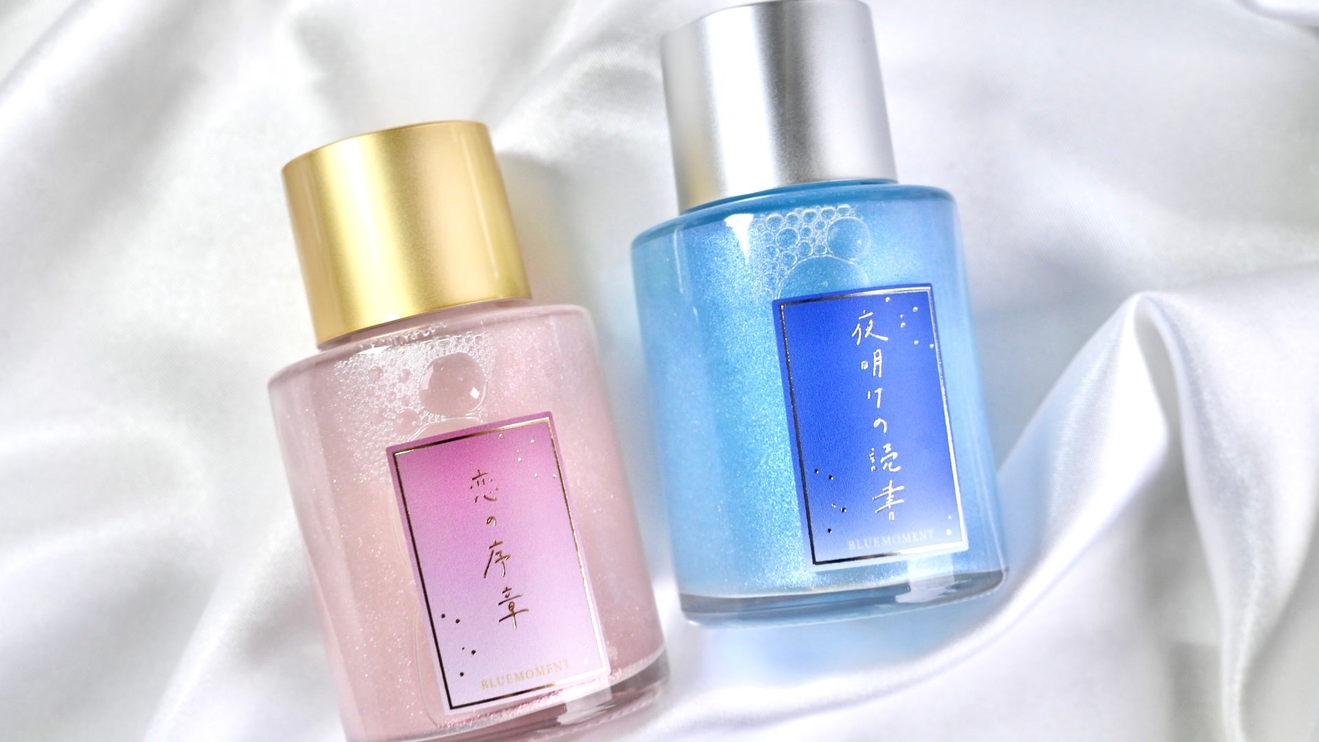コスメブランドBLUEMOMENTより、新たにパール入りのヘア&ボディオイルが登場。「秘めごとトワレ」で人気の「夜明けの読書」や「恋の序章」のほのかな香り付き。