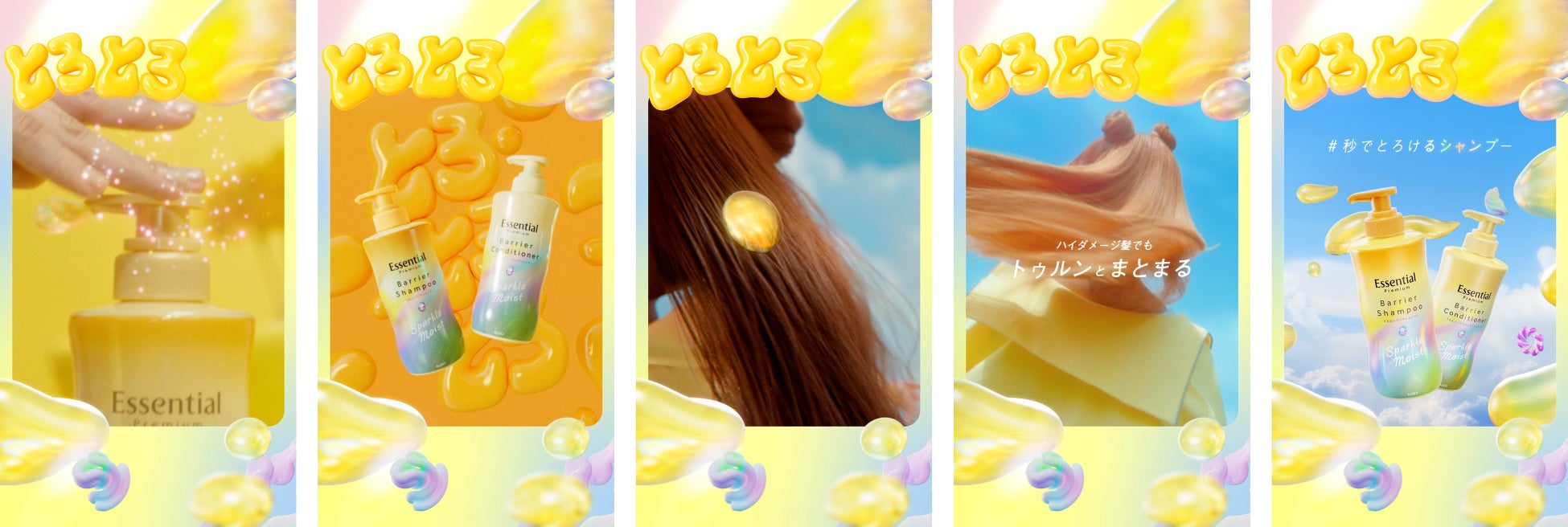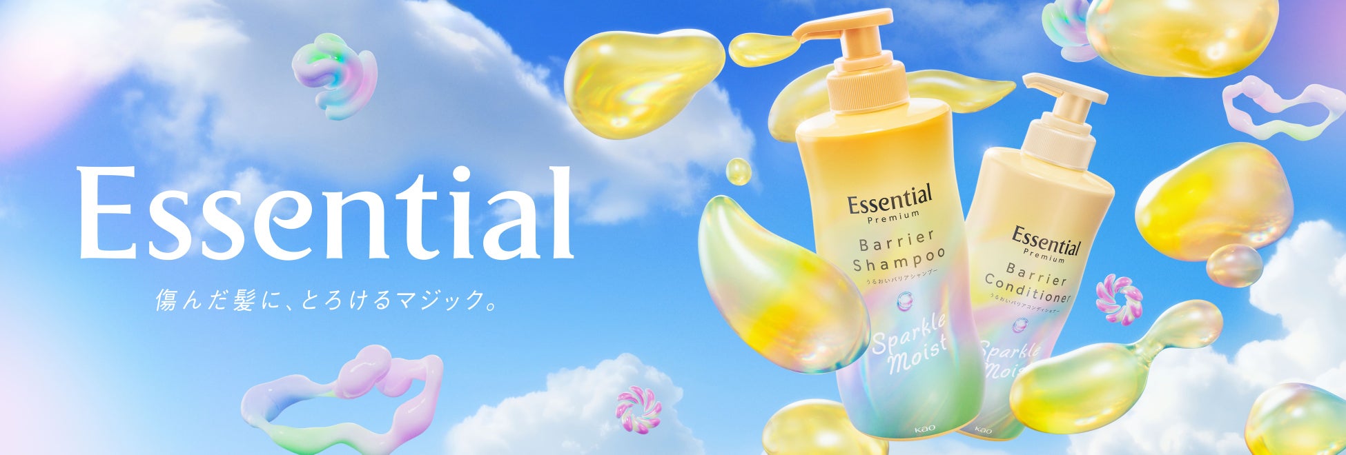 「Essential」は、「Essential Premium(エッセンシャル プレミアム)」シリーズより、ヘアカラーやブリーチを繰り返したり、アイロンやドライヤーの熱によるハイダメージを受けた髪に向けて『エッセンシャル プレミアム バリアシャンプー&コンディショナー スパークルモイスト』『エッセンシャル プレミアム とろ生ヘアマスク』を2025年7月12日より、新発売します。同時に、アウトバストリートメント2種『うるりジェリーミルク』『うるりキラリオイル』も発売し、これまで以上に若年層を中心としたお客さまの髪質と仕上がりニーズに広くお応えします。