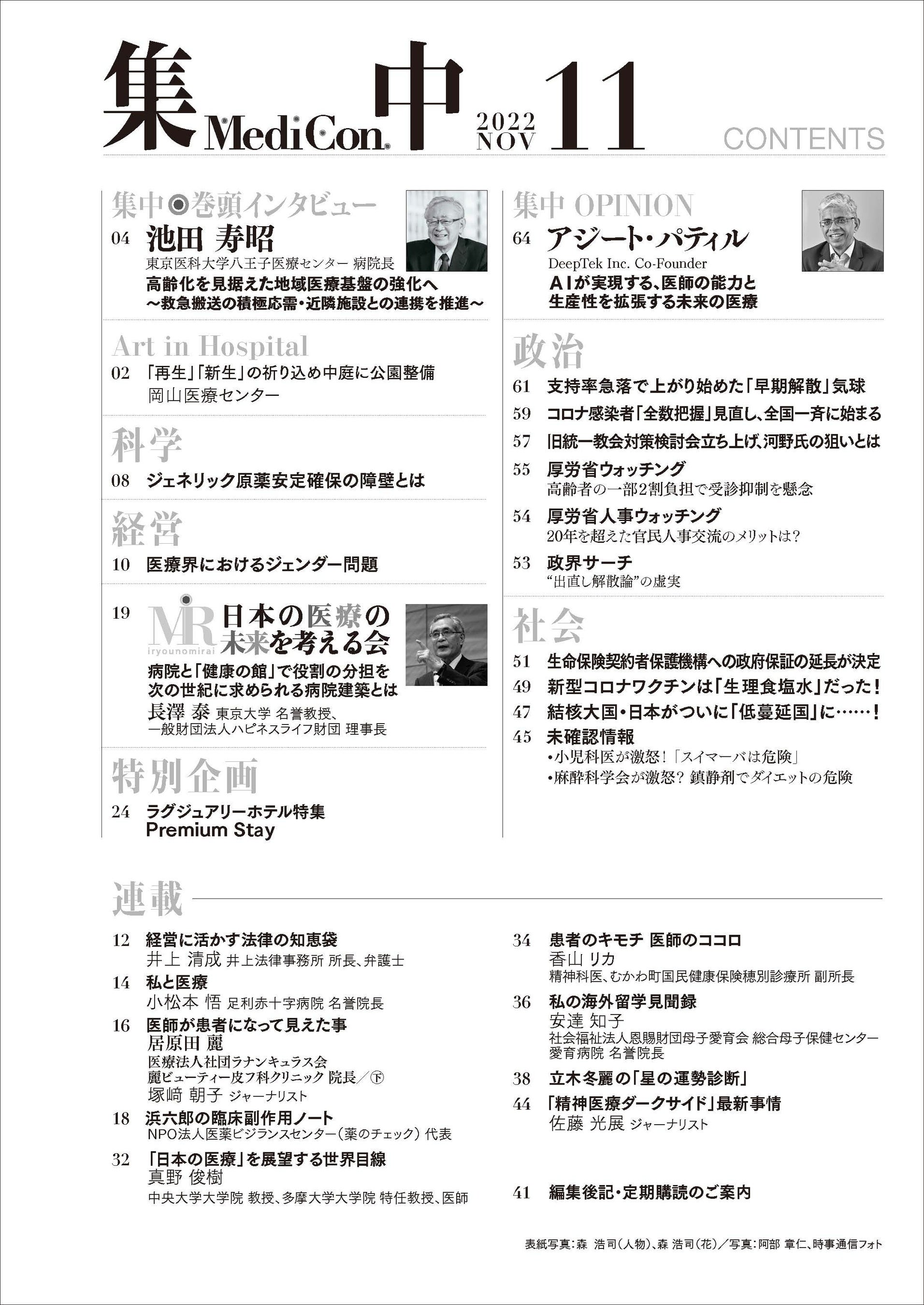 - 医療情報誌 月刊『集中』(年間予約講読制)11月号の見どころ