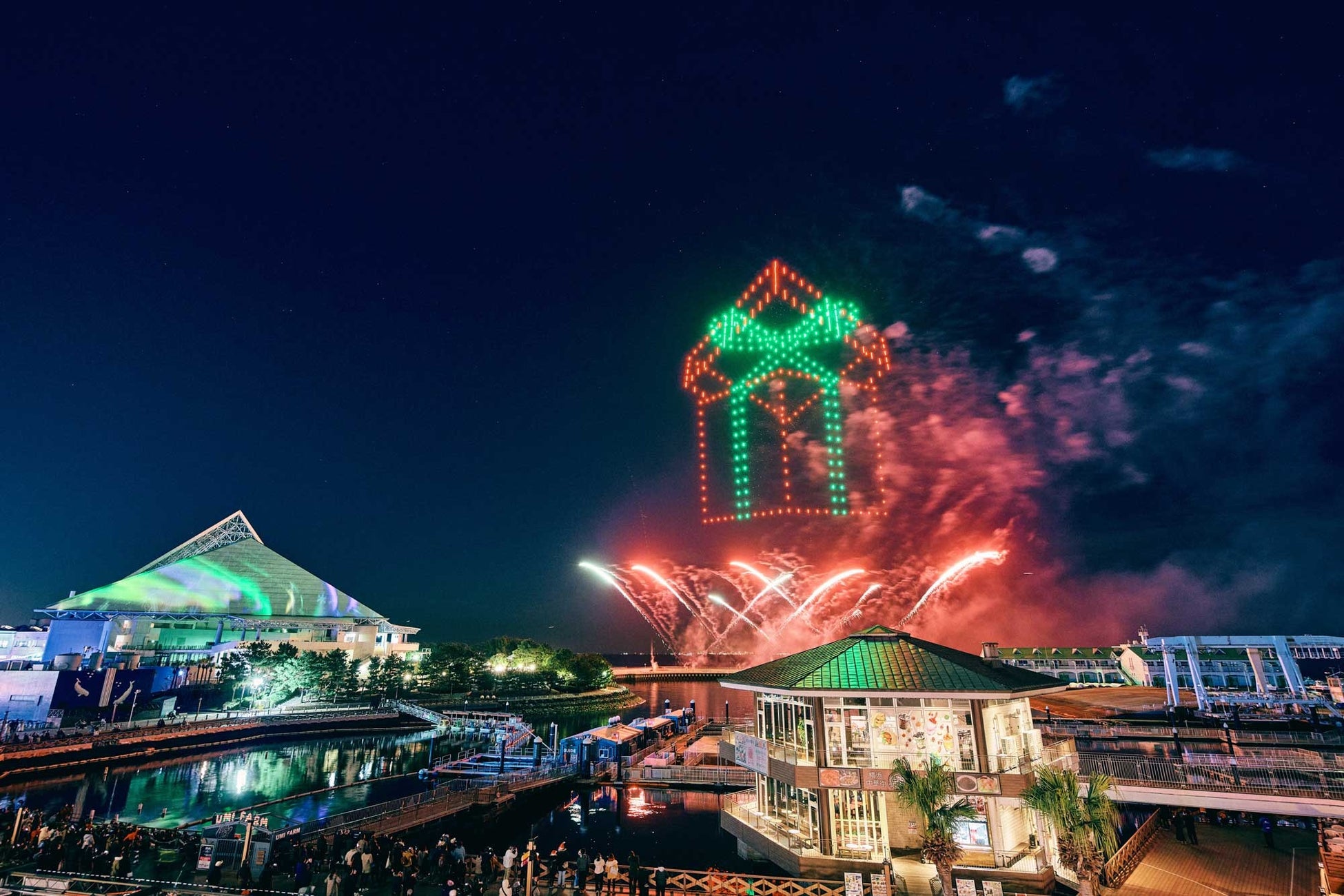 雨天または強風の場合はドローンショーの開催を中止する場合があります。