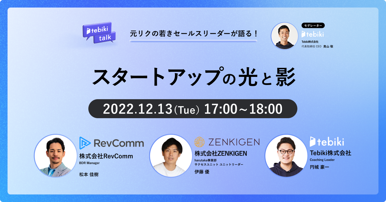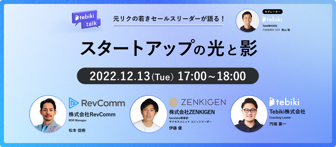 【12/13(火)開催】元リクの若きセールスリーダーが語る!スタートアップの光と影