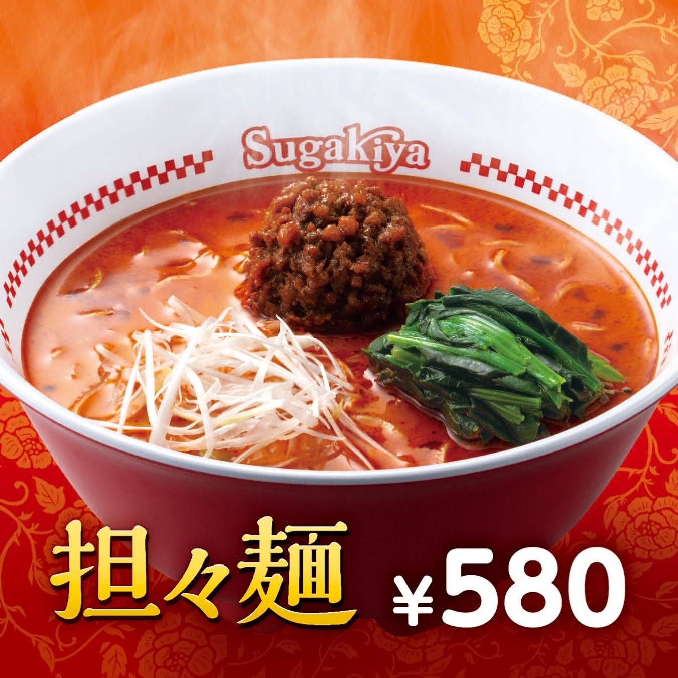 香り高い花椒と4種のねりごまを使用したコクのあるピリ辛スープに、肉味噌、ほうれん草、白ネギがより香りを引き立てる、スガキヤオリジナルの担々麺です。