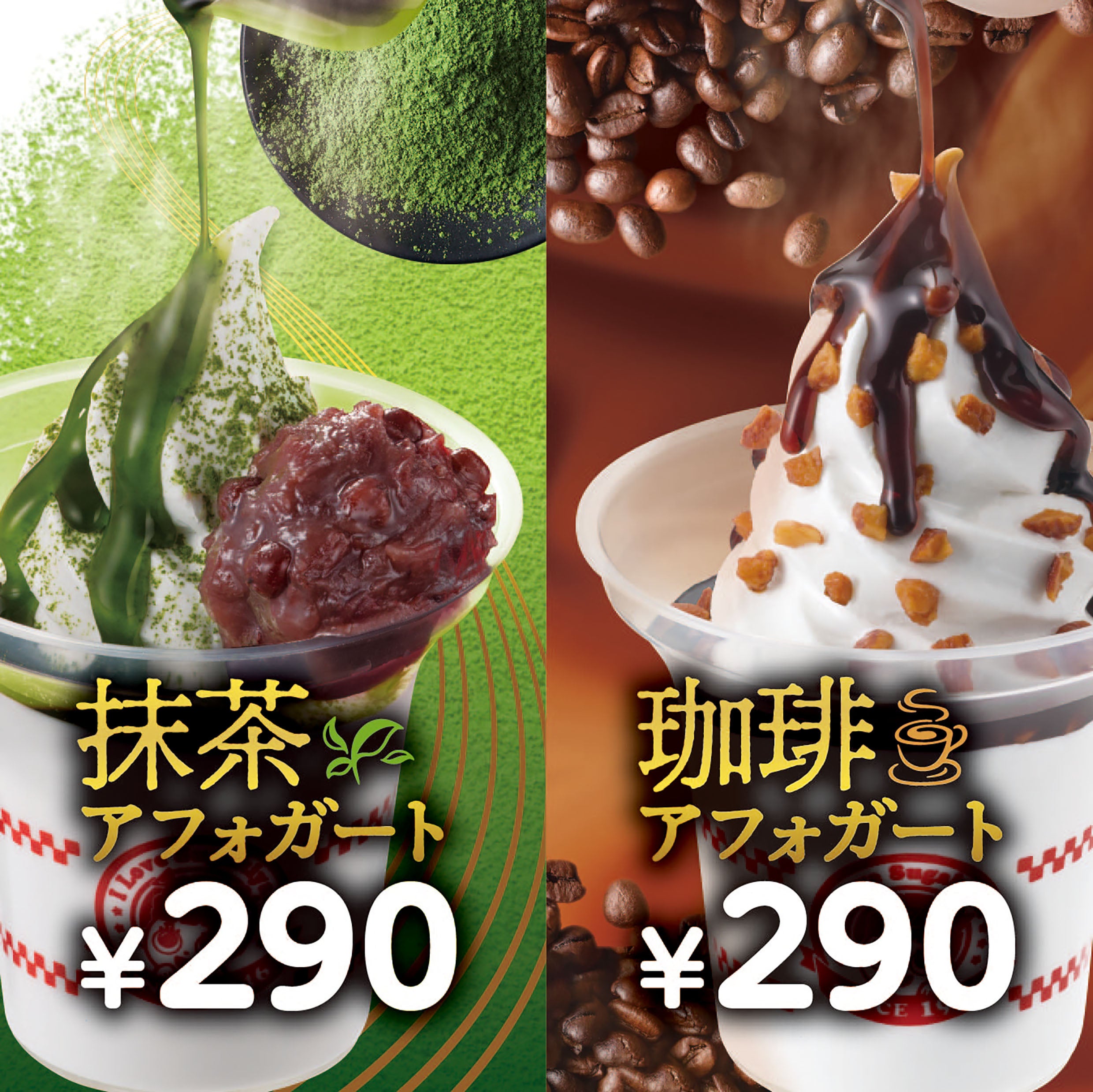 シロップでコーティングされたカリカリアーモンドを冷たいソフトクリームにトッピングしました。温かい濃厚カフェソースを、たっぷりかけてお召し上がりください。