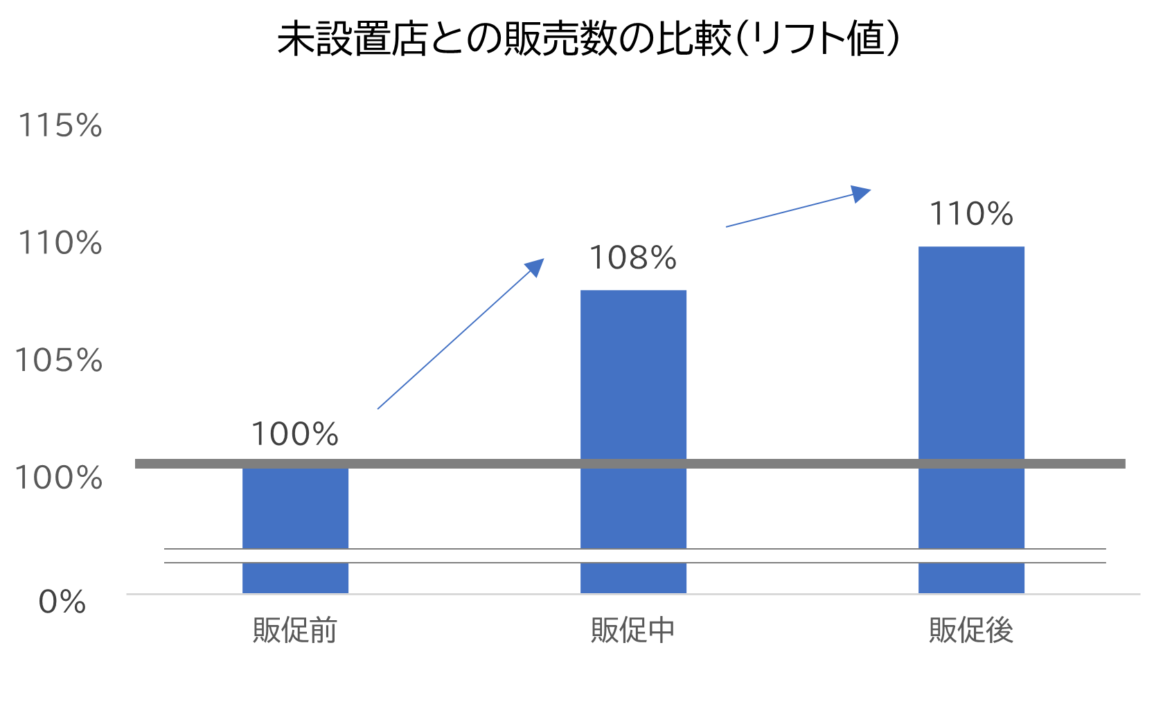 某飲料の複数の販促プロモーションについてPOSを分析した結果、キャンペーン期間中の設置店舗の売り上げは未設置店舗と比較すると、販促前差+8%と高い数字を出していることがわかりました。また、販促プロモーションが終わった後もその効果はさらに伸長していることがわかりました。