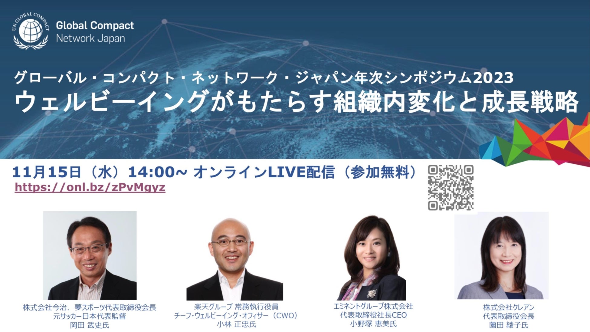 ~ウェルビーイングがもたらす組織内変化と成長戦略~ GCNJ年次シンポジウム2023開催のお知らせ(11/15・無料)