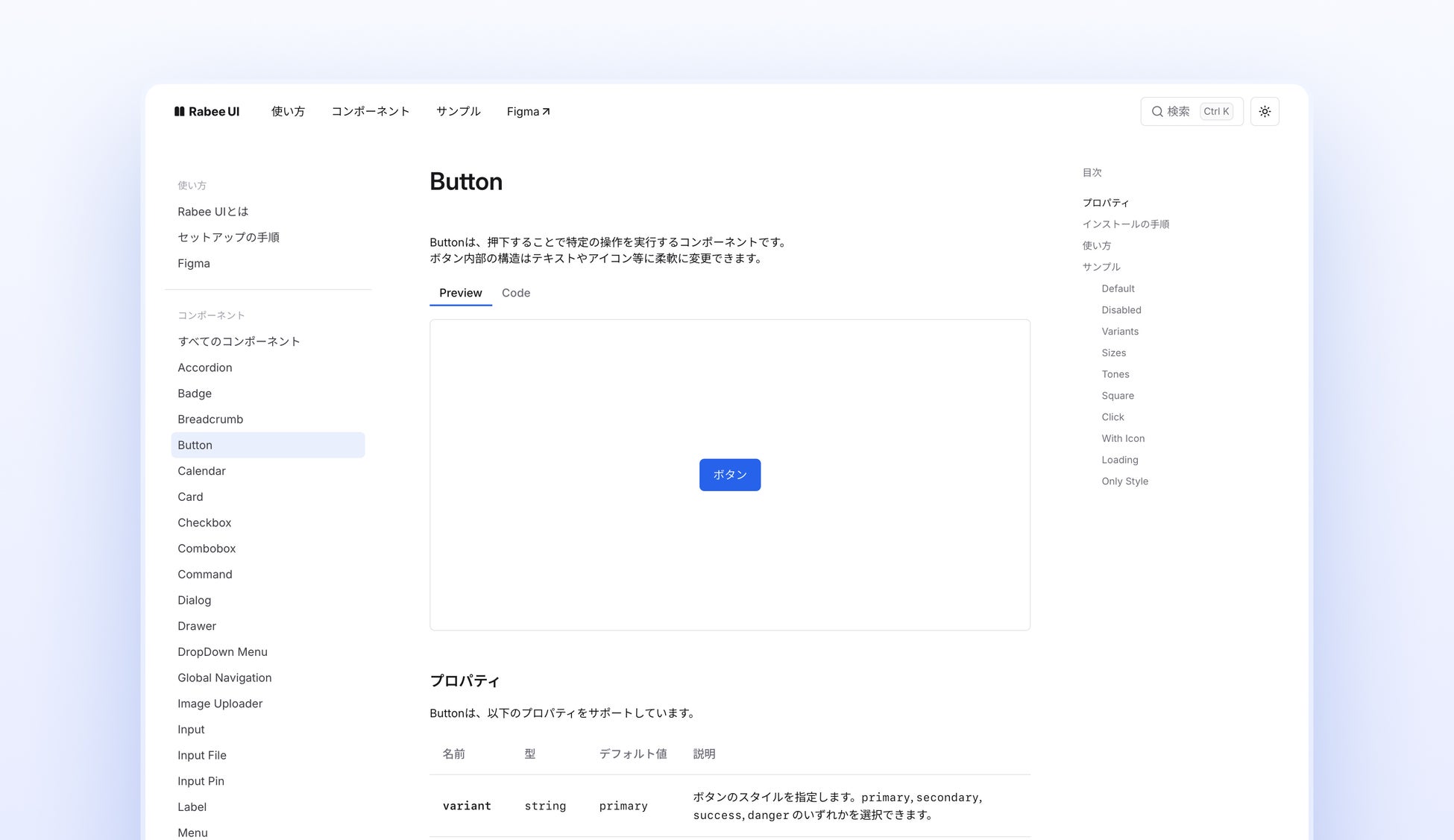 今回リリースした4種類も含む全38種類のRabee UIコンポーネントは、公式ドキュメントサイトで確認できます。