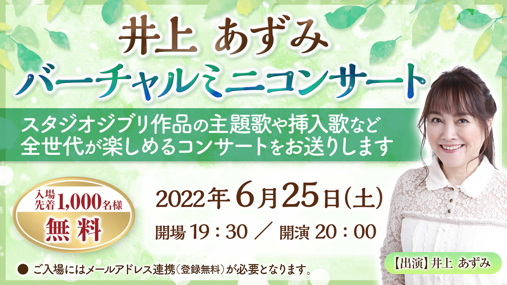 - 参加方法:そらのうえショッピングモール無料会員登録して、当日「井上あずみバーチャルミニコンサート」のチケット一覧よりログインをしてご参加ください。