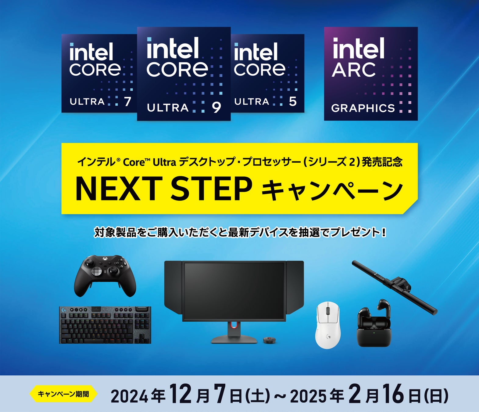 その発売を記念して、ご好評いただいております「インテル® Core™ Ultra プロセッサー (シリーズ2) 発売記念 NEXT STEPキャンペーン」の対象製品としてインテル® Arc™ B シリーズ・グラフィックス製品も追加となりました。