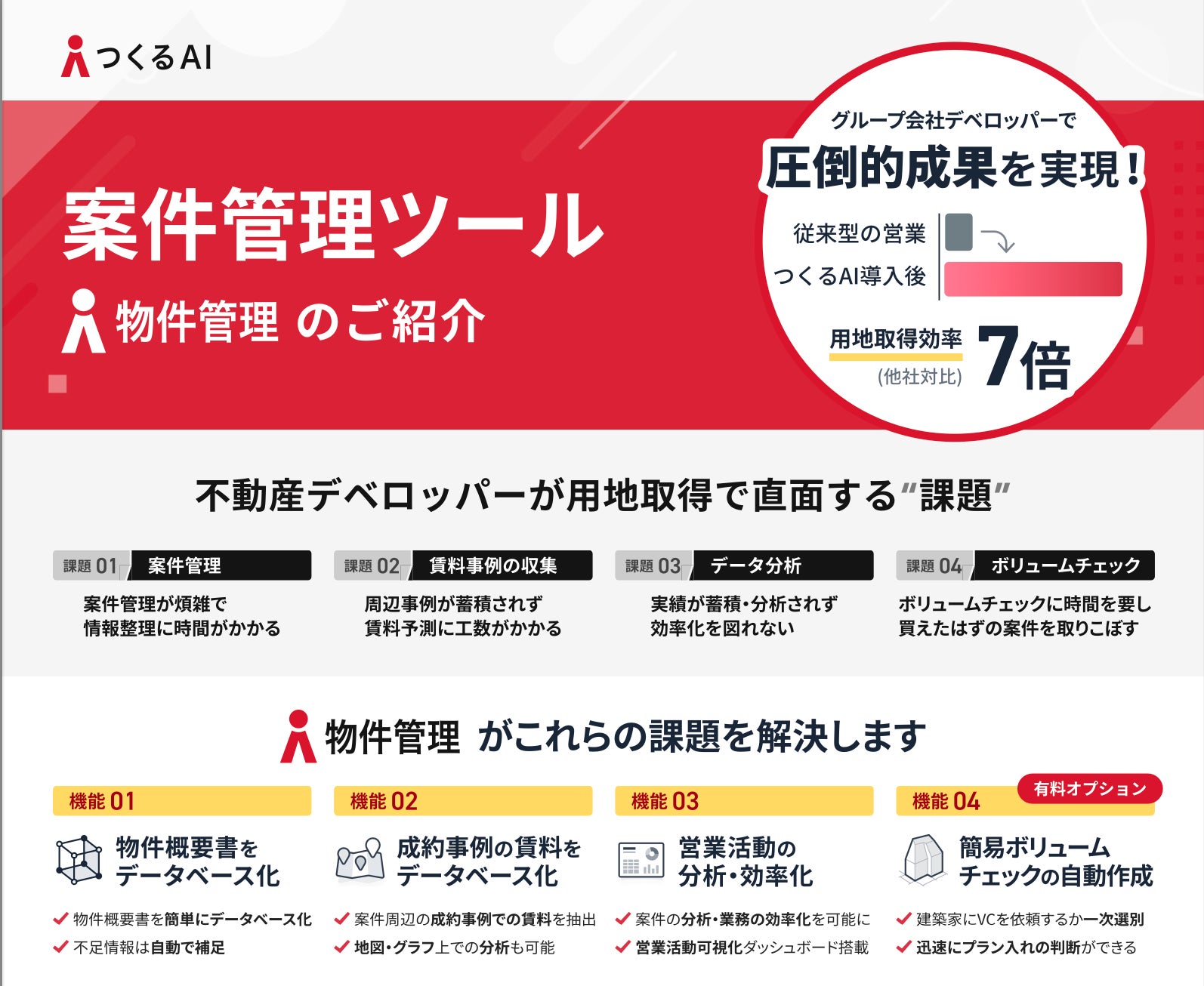 ■対象のお客様:不動産デベロッパー、不動産仲介業者、買取再販業者、建設会社、設計会社 など、不動産に関わる企業で業務改革やITツールの導入を推進している方