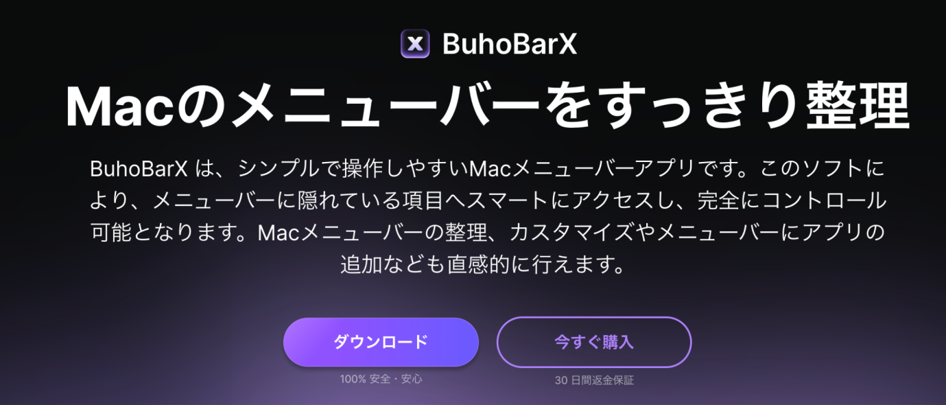 ステップ1: BuhoBarXの公式サイトからアプリをダウンロードし、Macにインストールします。