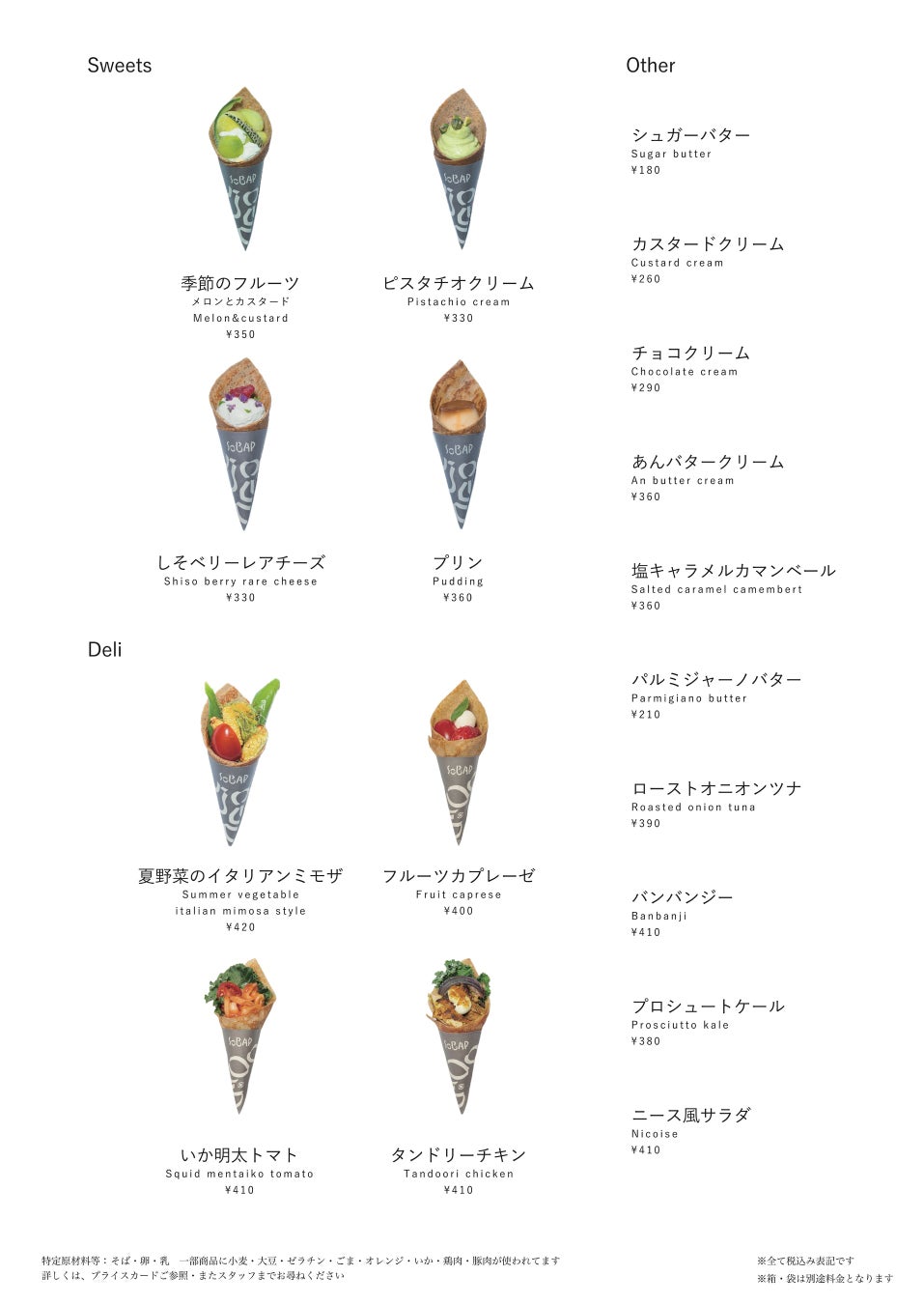 ブランド名やデザイン・コンセプト設計、店舗デザイン、メニュー開発、パッケージなどの細部にわたり平子良太氏に監修していただき、店舗の立地から発想し”TOKYO”をキーワードに洗練された店構え、手のひらサイズのそば粉クレープをイメージした愛らしさも大切にしたネーミングやロゴデザインとなっています。また、シェフならではの発想をふんだんに取り入れたメニューラインナップは、クレープの王道な美味しさから意外な食材の組み合わせ、1皿の料理のような発想など個性豊かな最大18種類のフレーバーが並んでおりますので是非お楽しみください。