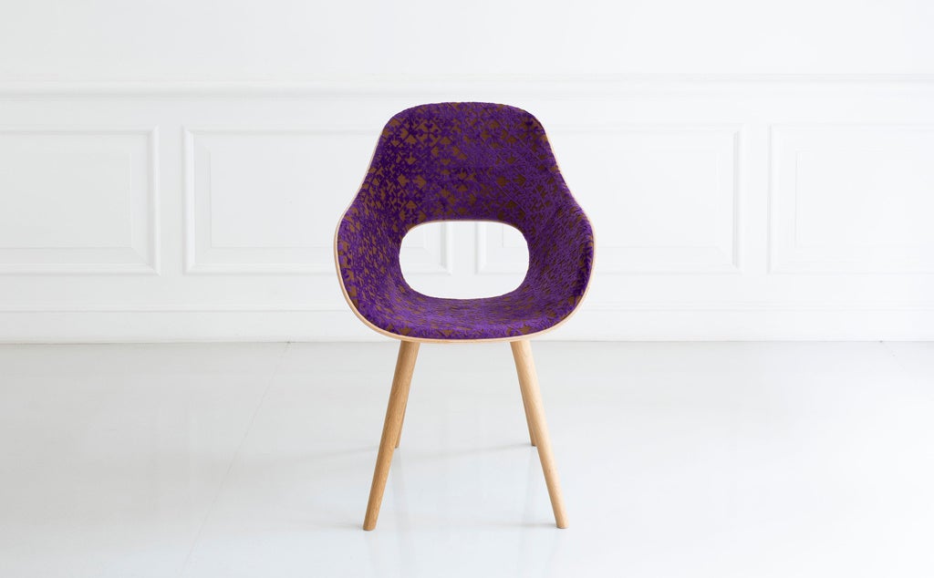 この世界が、生き物も、物も、現象も、思考も、全てが繋がり互いに響き合っていることを絵にした柄です。多色のベルベットジャカードで表現しています。