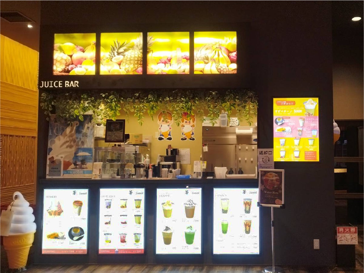 当館のオススメのフラッペ「すずペチーノ」やフルーツジュースやアイスクレープブリュレなど、