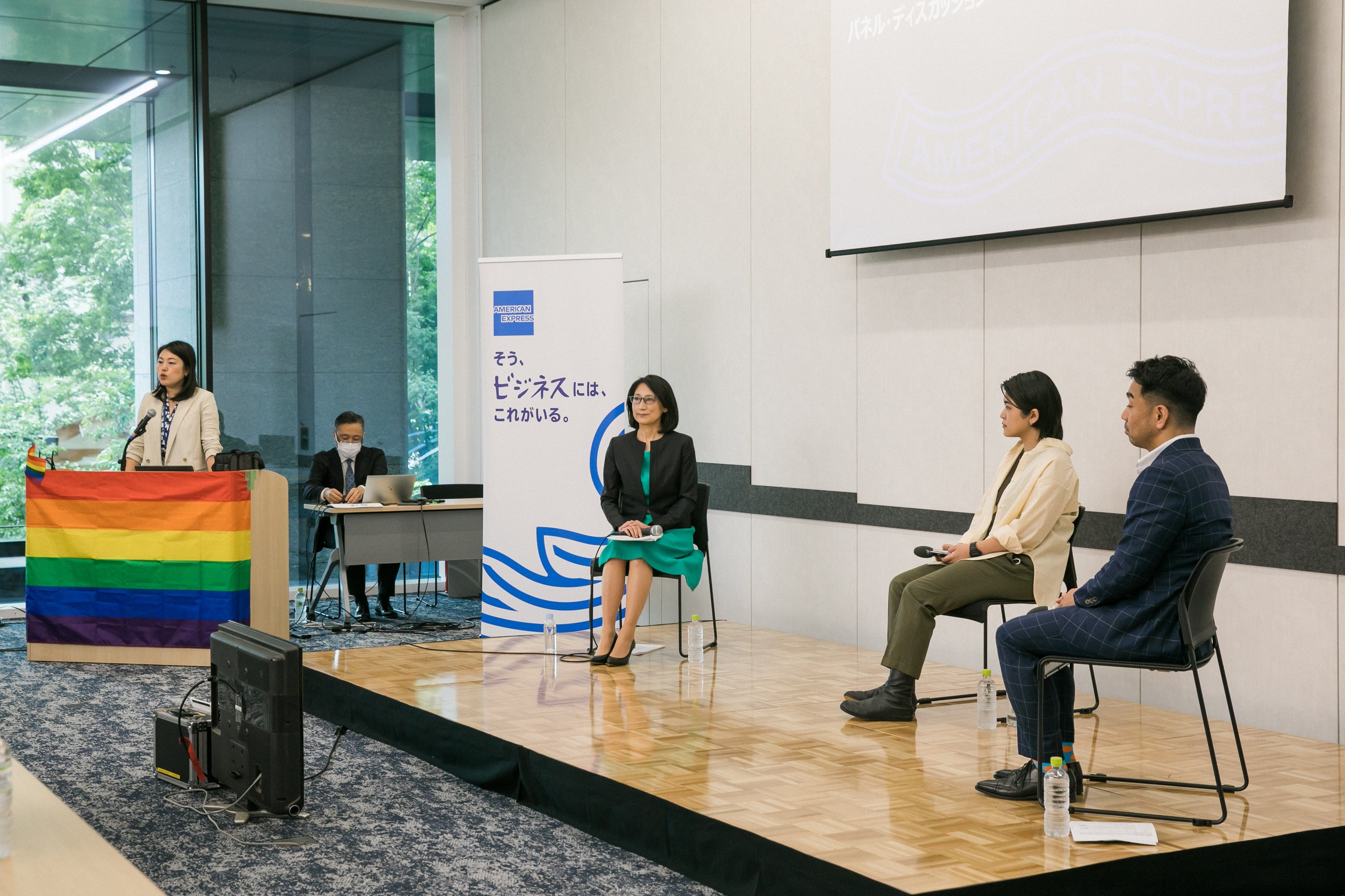 6月のPRIDE月間に合わせ、「LGBTQ+のキャリアとビジネスへのインパクト」と題したメディア向けセミナーを開催しました。同セミナーでは、アメリカン・エキスプレスが独自に実施した最新調査「企業とLGBTQ+のキャリア」の結果に関連して、LGBTQ+の採用、就職、定着、昇進、離職などのキャリア形成の各段階での課題と、人的資本が重要な時代における企業の対応について、有識者によるパネル・ディスカッションを行いました。パネル・ディスカッションでは、ジェンダー・スペシャリストで関西学院大学客員教授の大崎麻子氏がモデレーターを務め、ジェンダー平等など社会課題の解決に取り組む、株式会社TIEWA代表取締役CEO合田文氏、アメリカン・エキスプレス加盟店事業部門マーケティング アジア太平洋地域副社長であり、「PRIDE+ネットワーク」エグゼクティブ・スポンサーの津釜宜祥がパネリストをつとめました。