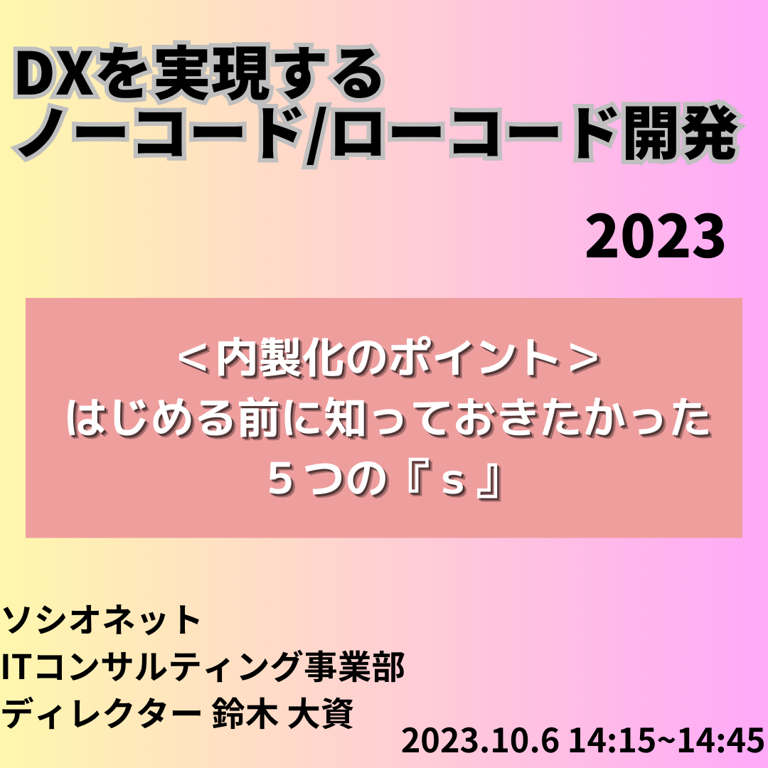 ソシオネット株式会社、10/6(金)14:15~「DXを実現するノーコード/ローコード開発 2023」への登壇が決定。