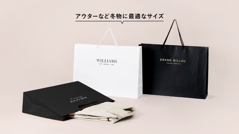 冬シーズンや大きめアパレル用に、大きめサイズの紙袋を探している