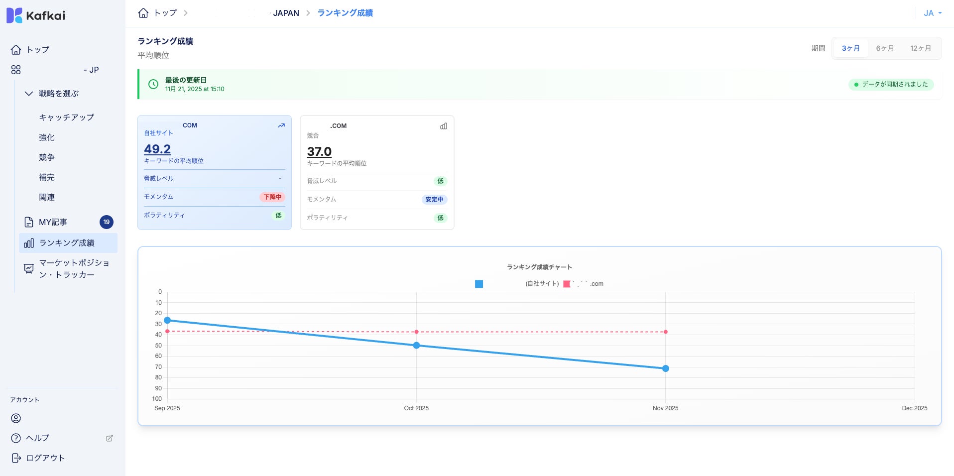 AIコンテンツ生成・SEO支援ツール Kafkai(カフカイ)、新機能「ランキング成績」提供開始