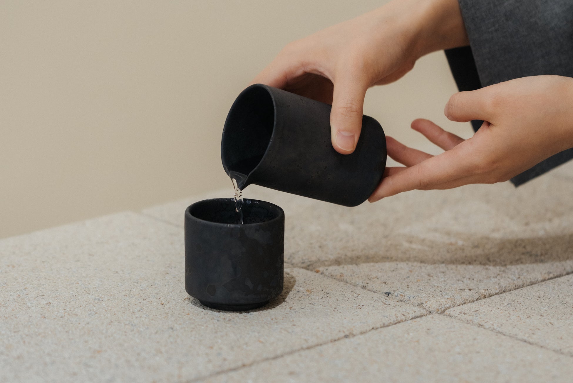 また、店舗での角打ちで日本酒を提供する酒器は、鹿児島県で活動する陶芸作家 城戸雄介氏による陶器ブランド「ONE KILN」に制作を依頼。「PRIME SAKE」の日本酒に合わせて、既存のAshシリーズの商品をベースにオリジナルのお猪口、片口を制作いただきました。角打ちでの提供のほか、店舗でも販売いたします。(販売価格:お猪口 2,000円、片口4,000円 税別)このほか、書家の加山幹子氏による「これはにほんしゅです」の書を配した風呂敷の販売も予定しています。