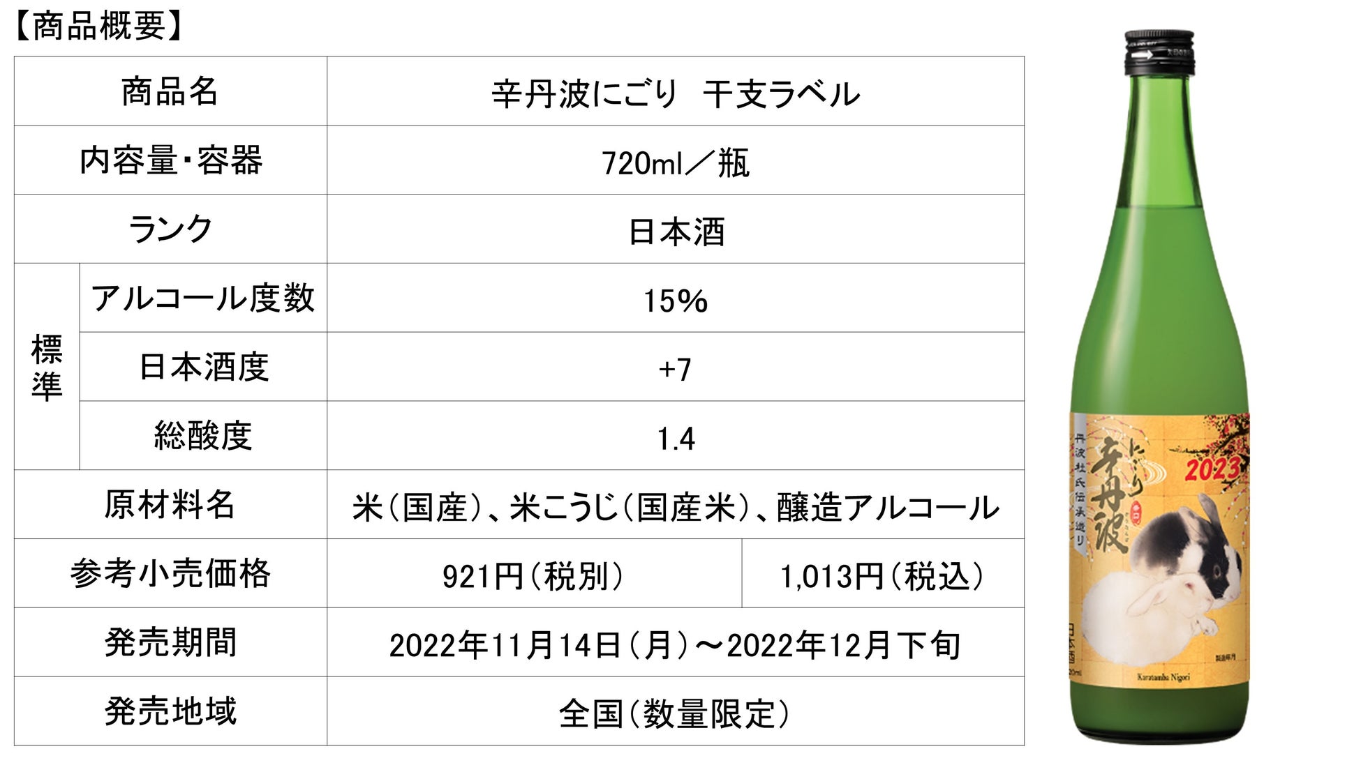 ~日本画家・竹内栖鳳の「宇佐幾」がラベルに~「辛丹波にごり720ml瓶詰 干支ラベル」限定発売!