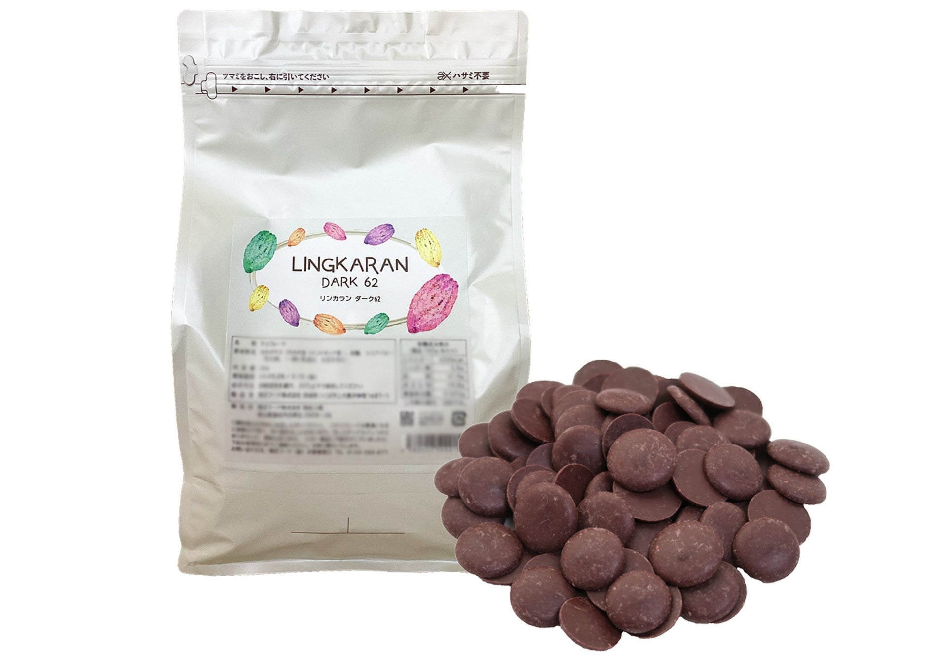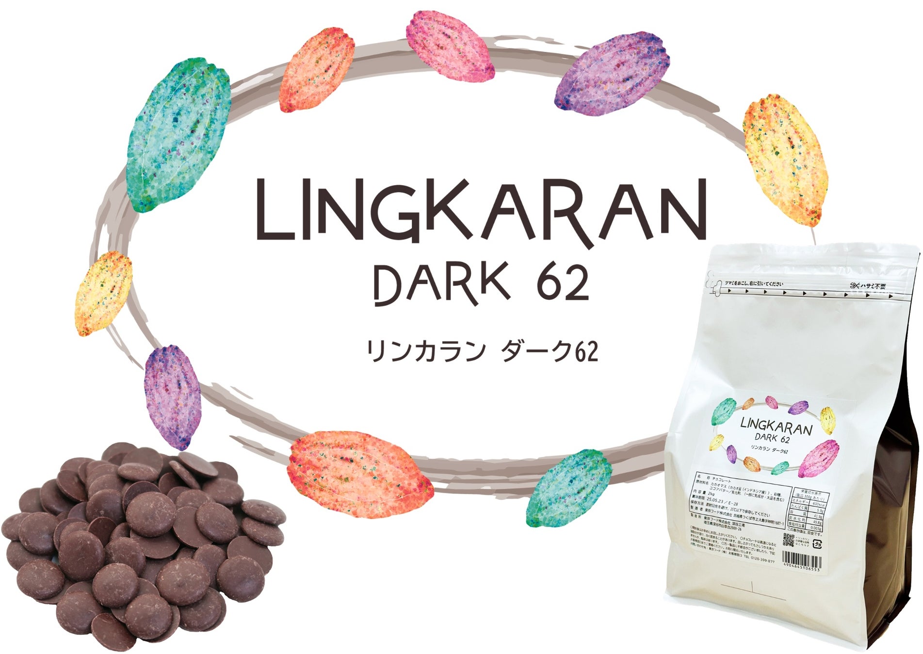 「リンカランダーク62」はインドネシア産カカオマスを使用し、おいしさと使いやすさを追求した製菓用ダークチョコレートです。カカオ分約62%で、優しい甘さとドライフルーツのような穏やかな酸味の後に、ロースト感とナッティな風味が広がるビタータイプのチョコレートです。