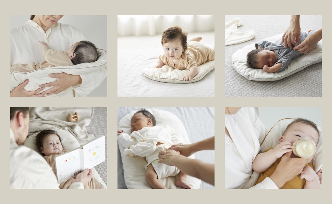 抱っこするときだけでなく、おむつ替えや授乳中、外出時など様々なシーンでお使いいただけます。