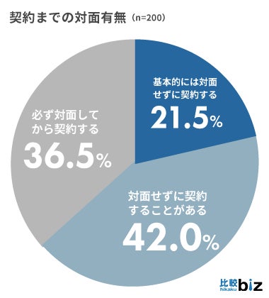 契約までの対面有無を「基本的には対面せずに契約する」「対面せずに契約することがある」「必ず対面してから契約する」の3つの設問で回答してもらいました。