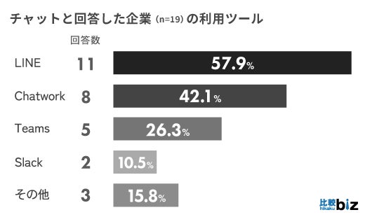 比較ビズはBtoBマッチングで基本的に受発注者は法人企業(toB)となりますが、税理士や建築会社は、相続やリフォームなどで、発注者が消費者(toC)となるケースがあります。「LINE」の回答が多かったのは、そのような背景があるのかもしれません。
