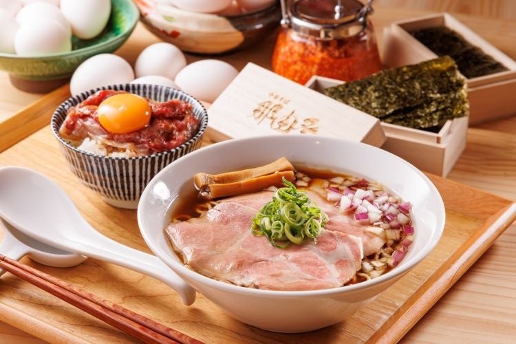 また、中華そばに使用する麺は、芳醇な⼩⻨の⾹りが強い選りすぐりの国産⼩⻨を使⽤し、⾷感を楽しんで頂けるように低加⽔で作り上げた当店専⽤の全粒粉細麺です。