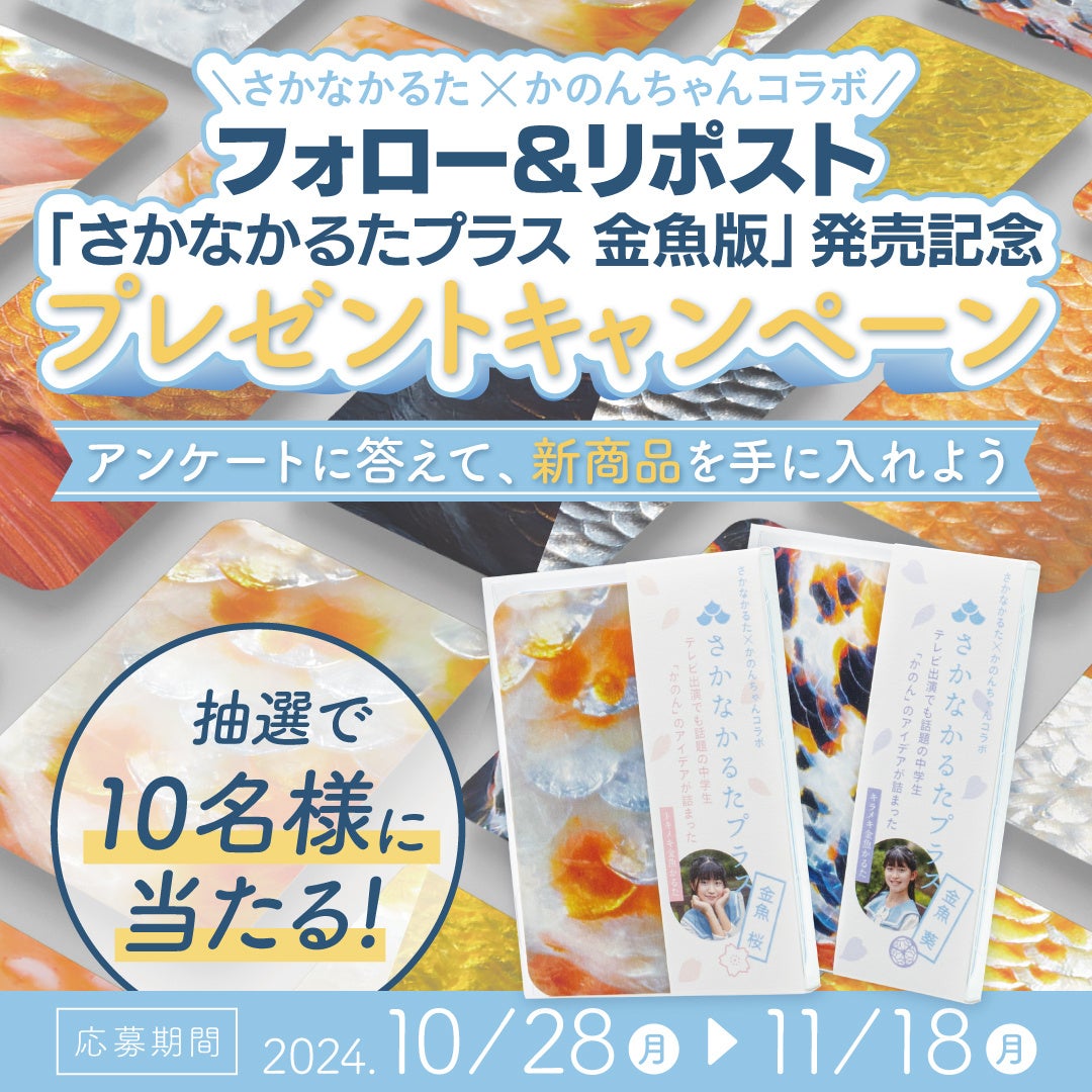 「さかなかるたプラス 金魚版」の一般販売を記念して、抽選で10名様に「さかなかるたプラス 金魚版」が当たるキャンペーンを10月28日(月)より実施しています。