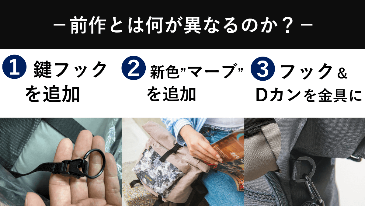 【前回1,367万円】Makuakeで大ヒットの台湾製5WAYバッグ、鍵フック&新色追加で再登場!荷物の増減にも即対応